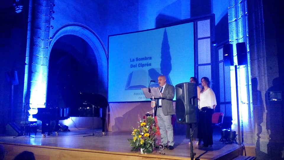 Camino y Ángeles entregaron el quinto premio, «La sombra del ciprés», concedido anualmente a un escritor por su labor en favor de los valores de la creación artística y su trayectoria literaria; en este caso correspondió la exitosa y joven poeta Elvira Sastre, que agradeció emocionada su primer premio literario, recibido de nuestras manos.