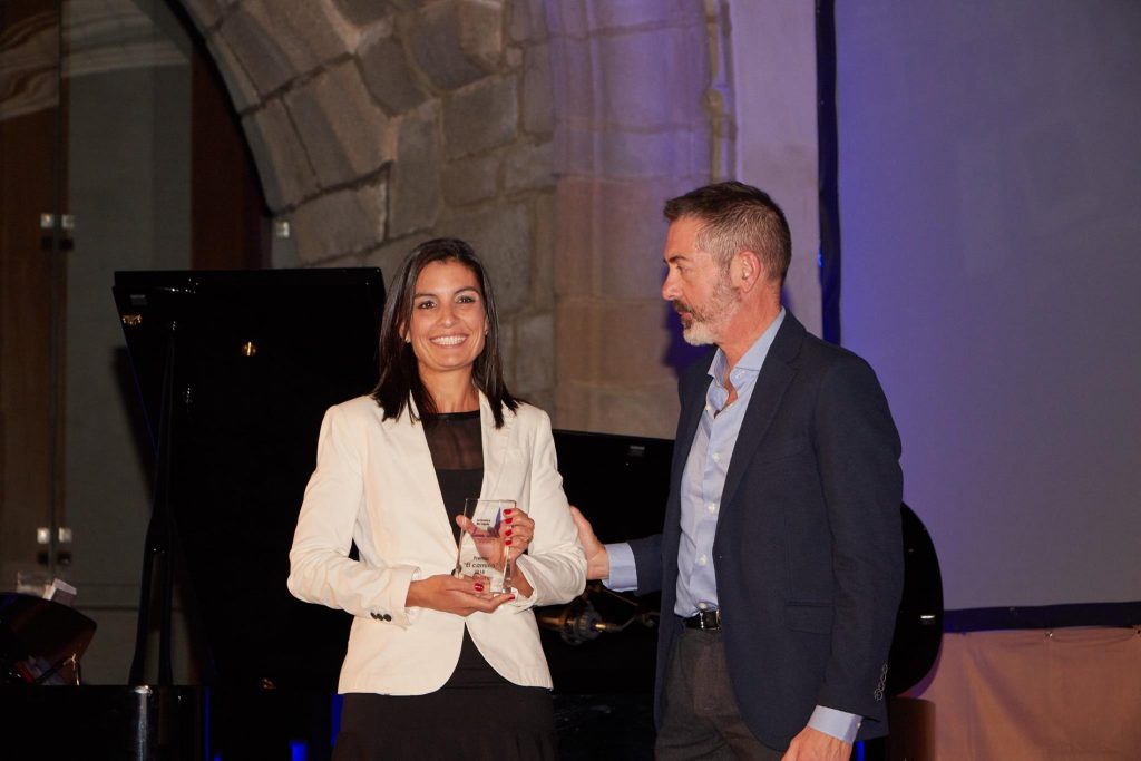 A continuación, se otorgó la Mención Especial, que este año fue para la Asociación de Cultura y Patrimonio «La Alhóndiga», de Arévalo, y se lo entregaron nuestras compañeras, que además ejercían la labor de presentadoras, Paula Velasco y Carolina Ares, lo recogió su presidente Juan Carlos López.