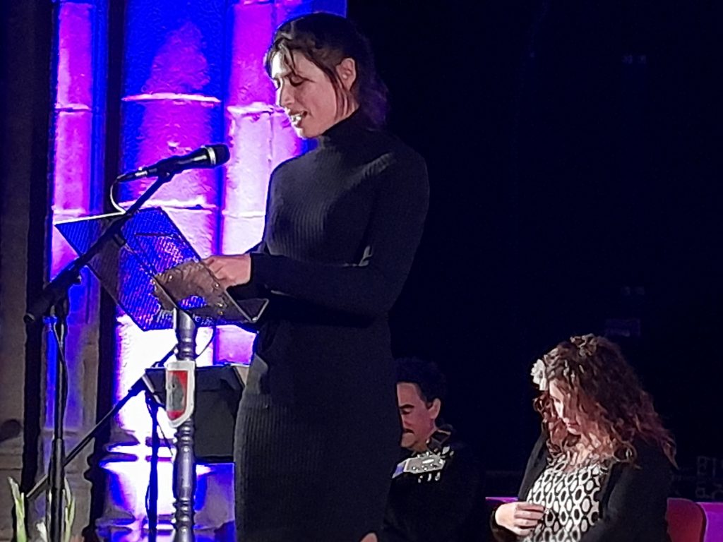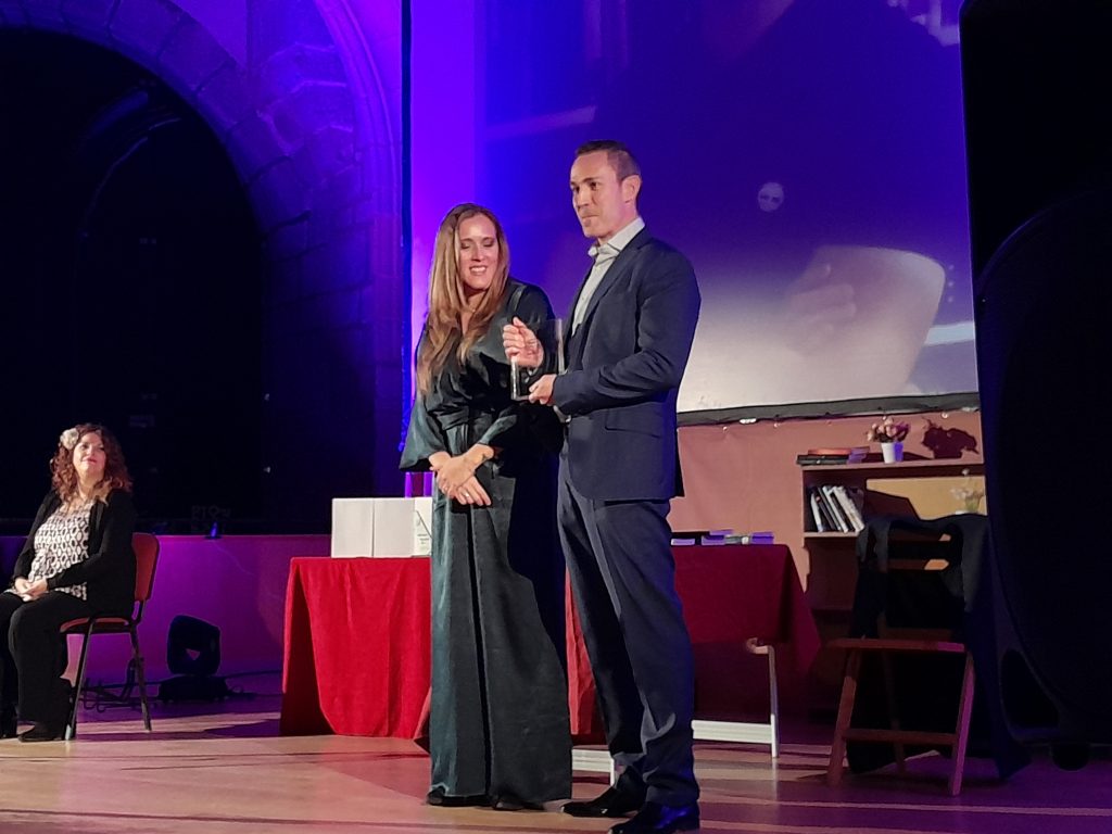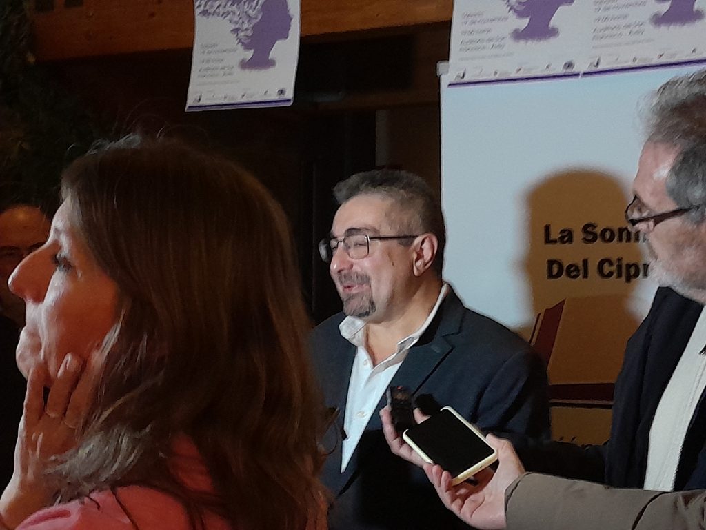 6º. Premio «La Sombra del Ciprés» a la novelista Cristina López Barrio, novelista dedicada a la creación de universos, personajes e historias, que ha sabido llegar con ellos al lector explorando formas o temáticas en cada nueva aventura. Este galardón fue entregado por nuestro vicepresidente Ánzoni Martín.