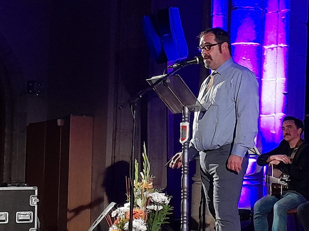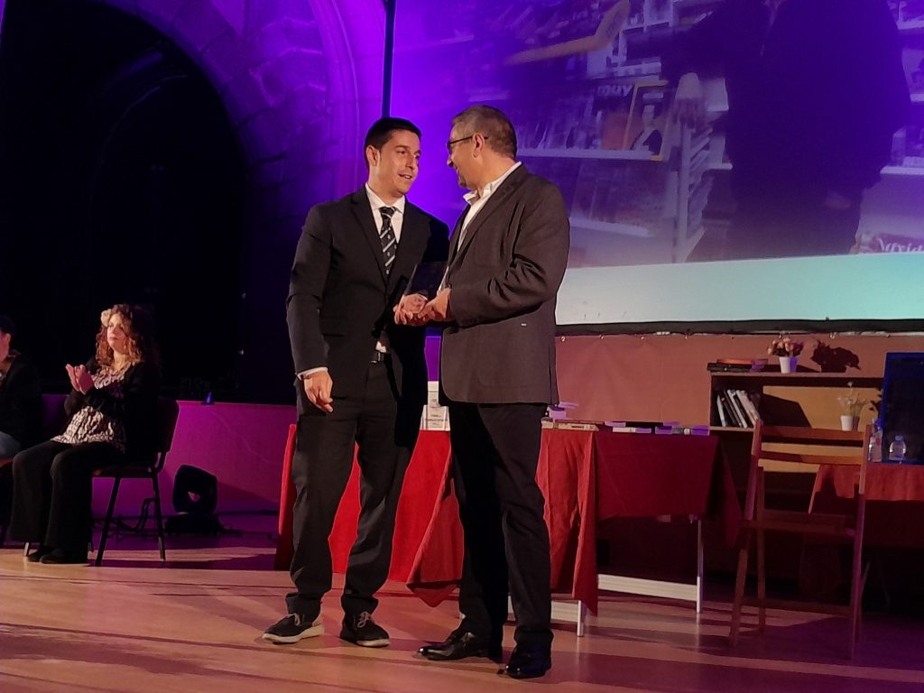 2º. Premio «El Hereje» a Manuel Gordillo Molina, por su labor en la distribución de literatura desde 1996 en el quiosco de prensa de la estación del tren de Ávila, manteniendo al ciudadano engarzado con la información, el entretenimiento y la actualidad. Lo entregó el representante de la CEOE, Ismael Salgueiro.