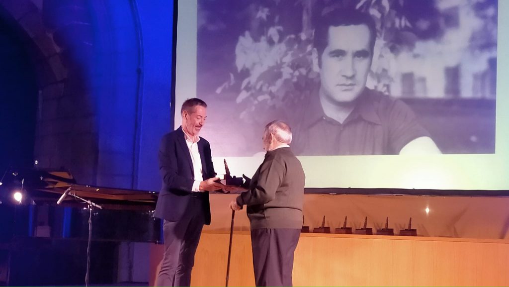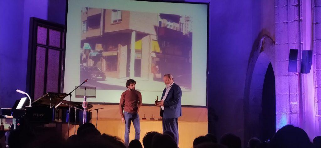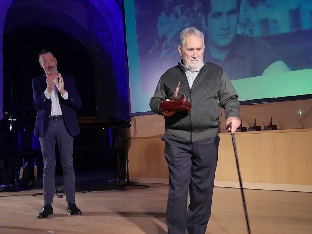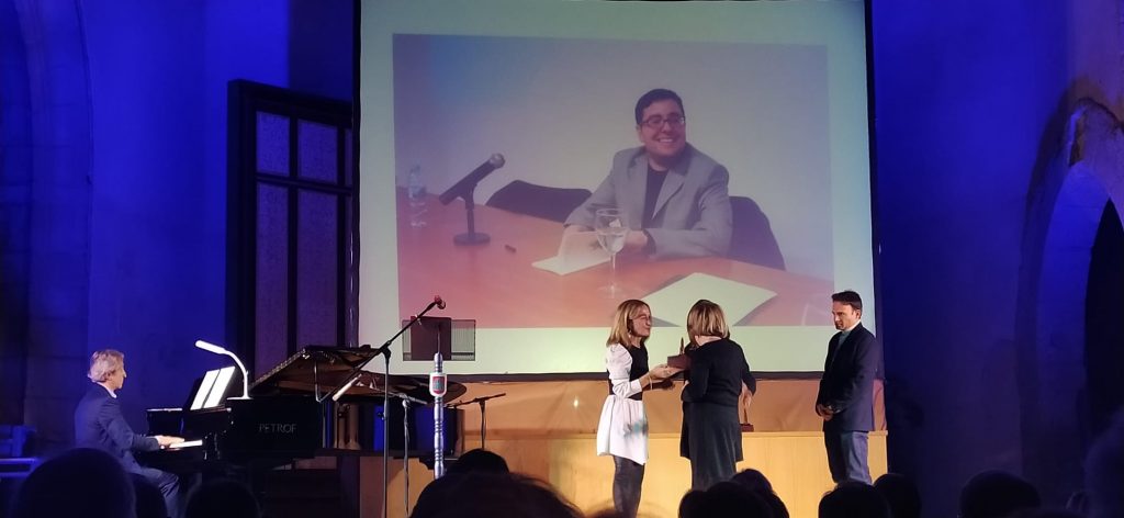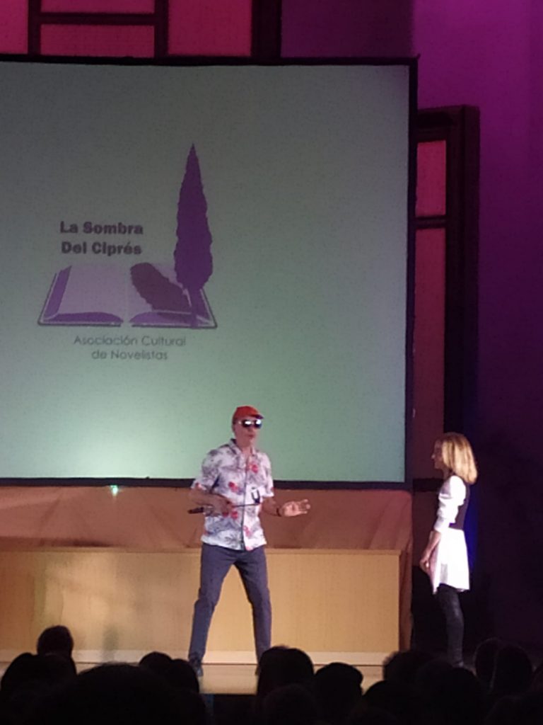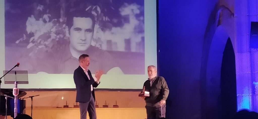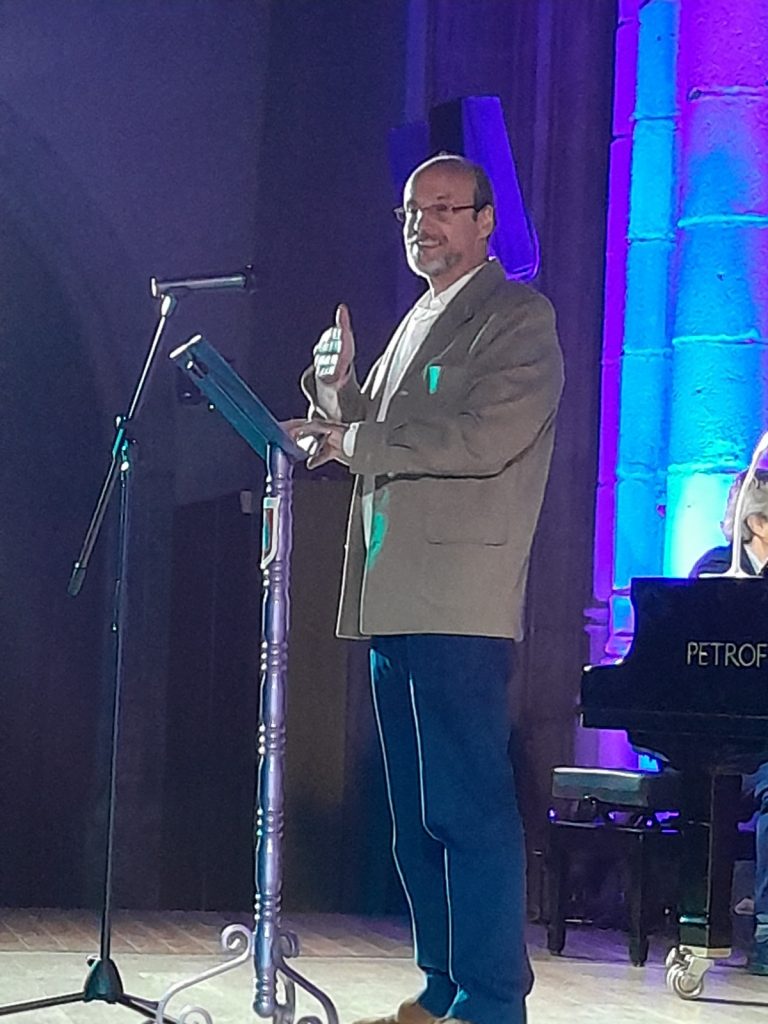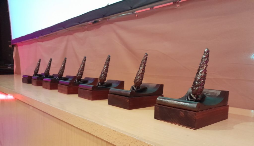 Este año estrenamos galardón, una estatuilla diseñada por nuestro compañero Julio Veredas, en el que una mano escribe con una pluma, que evoca la forma de un ciprés.