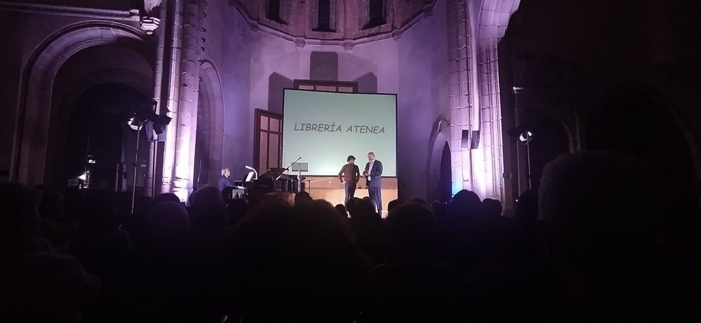 El tercer premio, «El hereje», fue para la librería Atenea, entregado por el poeta abulense Daniel Zazo y recogido por José Eugenio García, quién con todo orgullo habló de su mujer, su hijo y su hermana, ya jubilada en el negocio familiar.