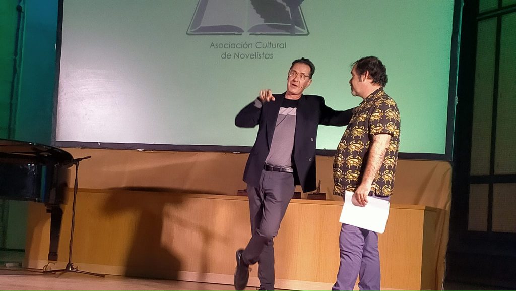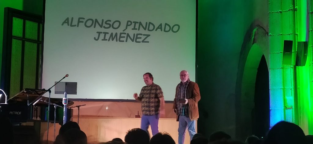 El cuarto premio, «Cinco horas con Mario», lo entregó el vicepresidente de la asociación, Ánzoni Martín, a Alfonso Pindado Jiménez, activista cultural del mundo del teatro, que, entre otras cosas, dirigió en Madrid la famosa sala alternativa Triángulo y se ha establecido en el pequeño pueblo de Aveinte, donde ha abierto la sala Adventium.