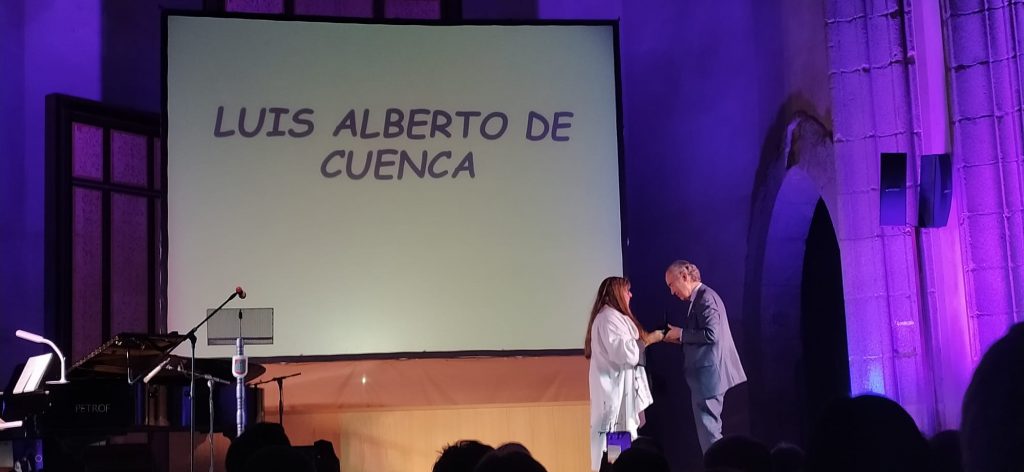 El último premio de la noche, que lleva el nombre de la asociación, «La Sombra del Ciprés», lo recibió el poeta, crítico literario, traductor y ensayista, Luis Alberto de Cuenca, que lo recogió de manos de la presidenta.