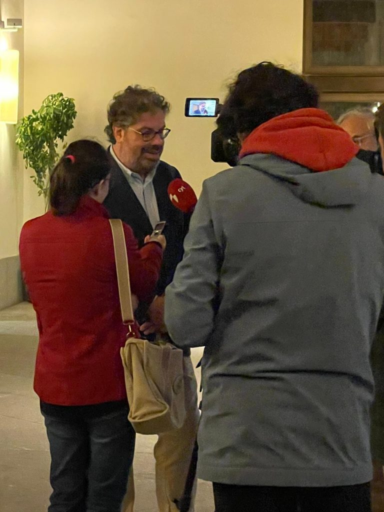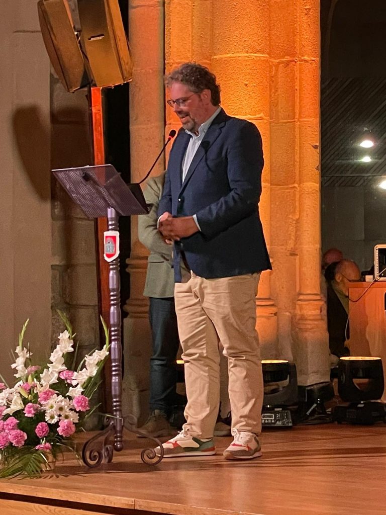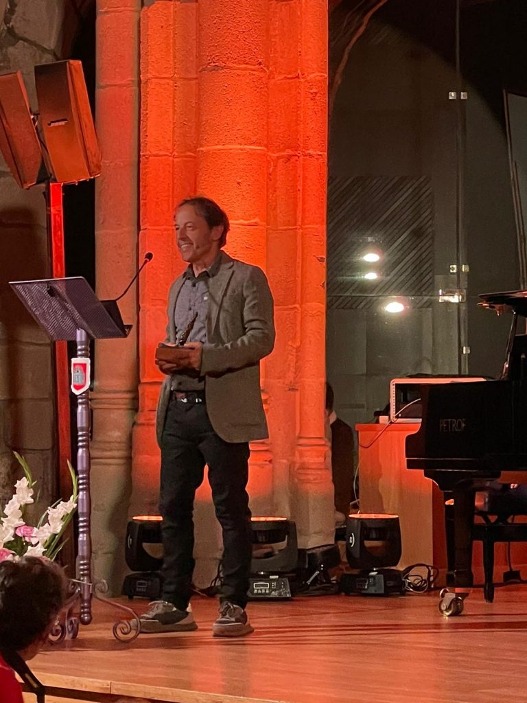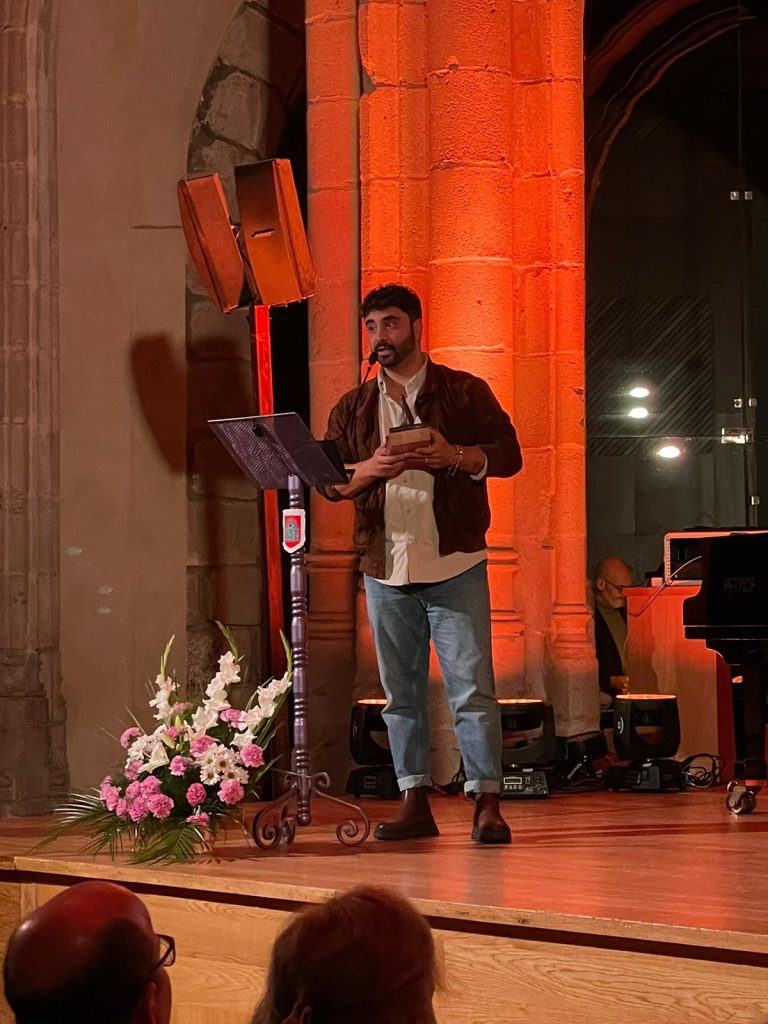 El último galardón de la noche, lo justificó en pantalla nuestra presidenta. Este premio lleva el nombre de la asociación, «La Sombra del Ciprés», lo recibió Sergio del Molino Molina, escritor madrileño, ligado también a Valencia y Zaragoza. Se dio a conocer en el año 2013 con su obra La hora violeta, premio Ojo Crítico, y alcanzó el reconocimiento con uno de los libros del año 2016, su ensayo La España Vacía. Autor de varias novelas —la última de las cuales, Los alemanes, se alzó con el Premio Alfaguara 2024— es también destacado ensayista y columnista, así como colaborador en espacios radiofónicos nacionales.