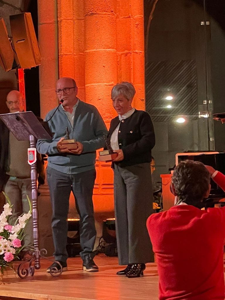 A continuación, hubo un galardón en forma de Mención Especial a Ramiro Gallego Pindado y María Belén Gómez Gómez, trabajadores del Auditorio de San Francisco, por su continuo apoyo a la Asociación y a muchas otras actividades culturales. Lo entregó el tesorero de la asociación, Guillermo Buenadicha.