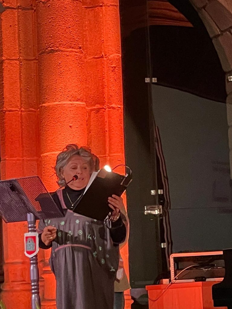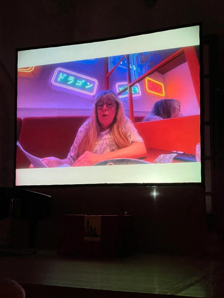 Acudió también a la cita nuestra presidenta, Ángeles Jiménez Soria, por medio de su voz e imagen en pantalla, ya que se encontraba ausente, de viaje al Japón. Así, a través de los medios informáticos dio el discurso institucional, haciendo mención a los diez años de los galardones, a los once de la asociación y a los veinte dedos de las manos y los pies. Literal, como dicen ahora los jóvenes.